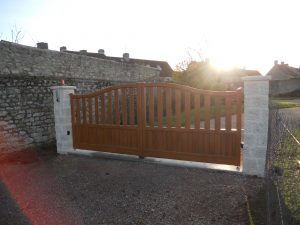 Le particulier chez qui cette pose a été effectuée a choisi un portail « Jazz » d’un coloris beige à : forme chapeau de gendarme 2 poteaux supports motorisation à bras. Ainsi, même si vous ne disposez pas d’une structure pour accueillir votre portail, autrement dit des piliers existants à votre domicile, nous pouvons vous fournir des supports. D’un autre côté, une motorisation à bras peut s’avérer utile par son impact minime sur l’esthétique globale de votre extérieur. Cette installation a été effectuée par Aury Fermetures dans l’Orne (61).